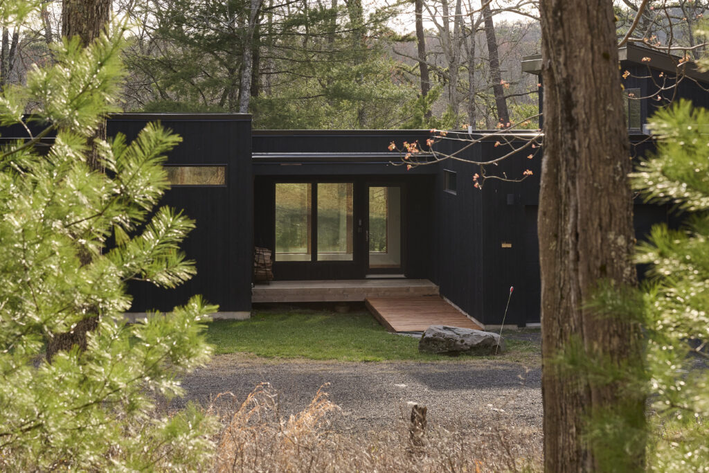 Three bedrooms, two and a half bathroom modern home | 2,125 square foot home on 5.08 acres | New construction by local design team Major Jacks x Wishbone | Sunken living room with wood burning stove | Chef’s kitchen with high-end custom cabinetry and new appliances | King-size primary bedroom features oversize window with panoramic woodland views plus ensuite with double sinks, soaking tub and shower | Primary suite access to outdoor shower and barrel sauna | Zen courtyard with dining table, fire pit area | Black Forest Club membership and amenities, including exclusive access to 1,100 acres of hiking trails and swimming holes | 5 acres with option to purchase adjacent 5-acre lot to preserve privacy | Asking $895,000