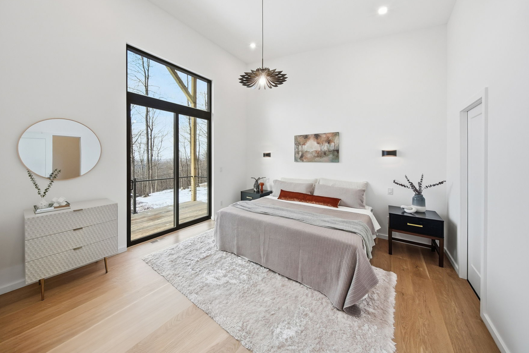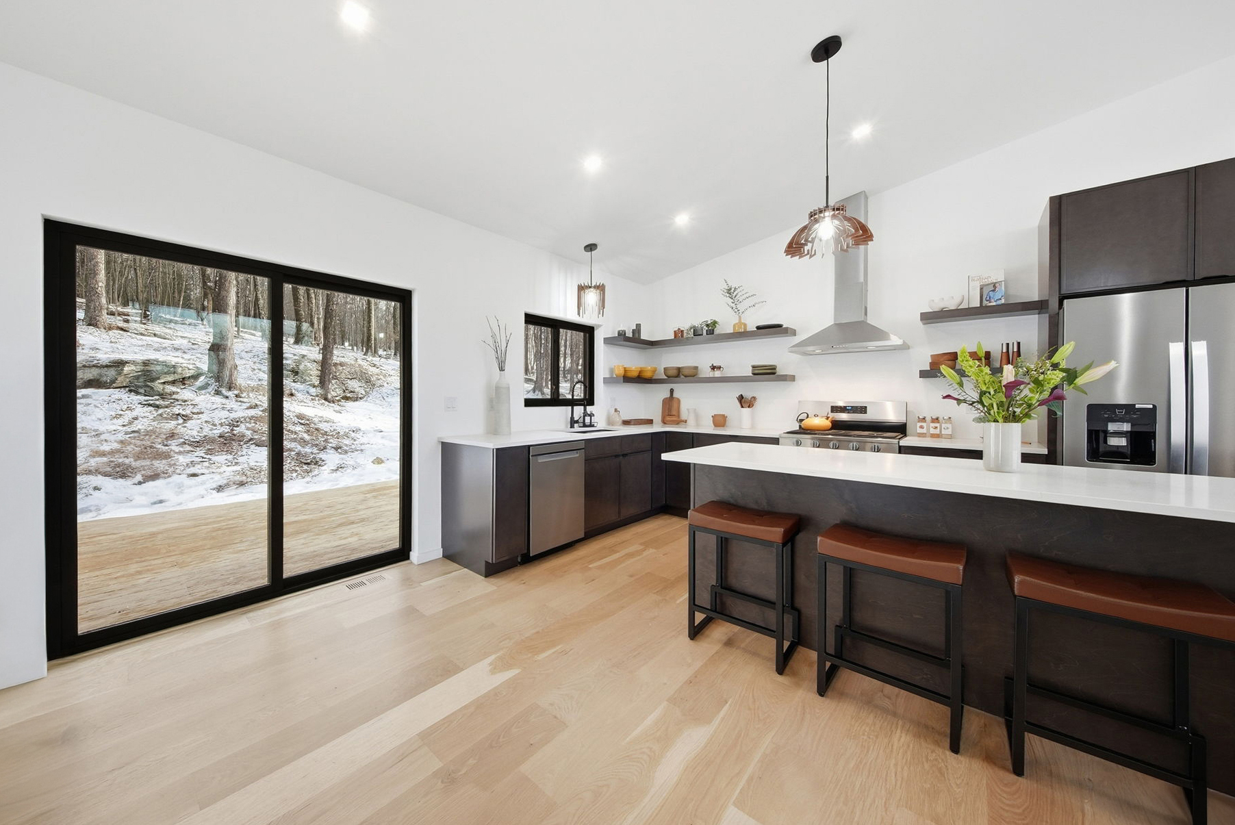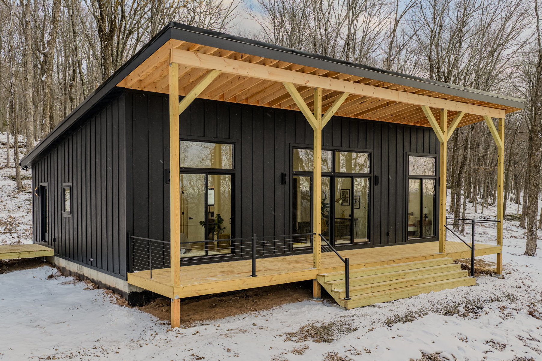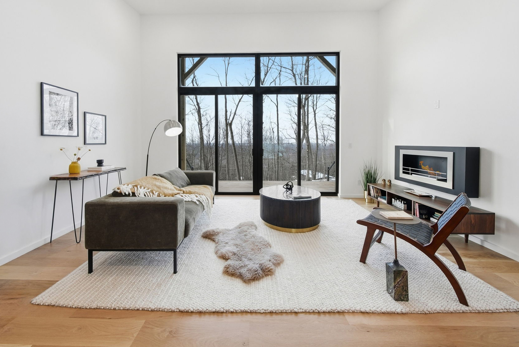 Three bedroom, two bathroom new construction | 1,320 square foot home on 2.78 acres | Open-concept layout | Soaring ceilings | White oak floors | Chef’s kitchen with stainless steel appliances, eat-in island, quartz countertops, and sleek cabinetry | Coffee bar and wine station | Biofuel fireplace | Primary suite with private exterior entrance and spa-like ensuite bath | Guest bath with soaking tub | Covered deck with forest views | Seller credit for $5,000 at closing for additional landscaping