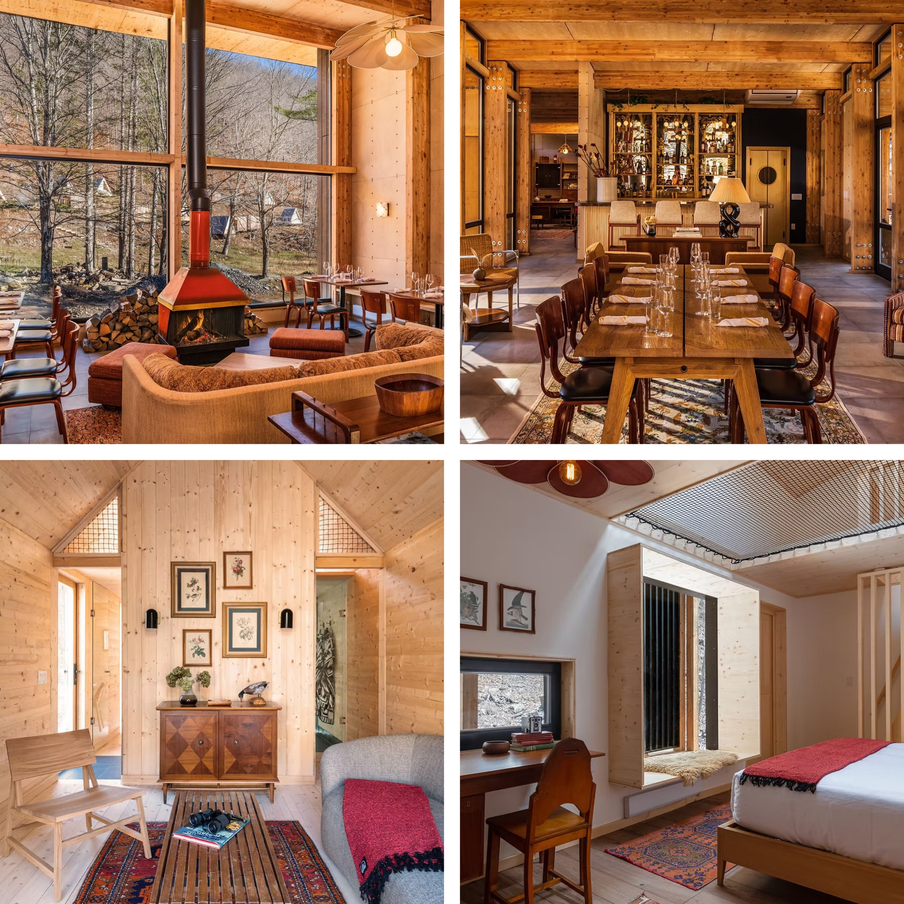 Hemlock Neversink’s mountain surroundings create a private, restorative retreat centered on nature and a relaxing setting. Photos: c/o Hemlock Neversink (above + 4), Upland Creative Co. (1), Clay Banks (2), and Escape Brooklyn (3)