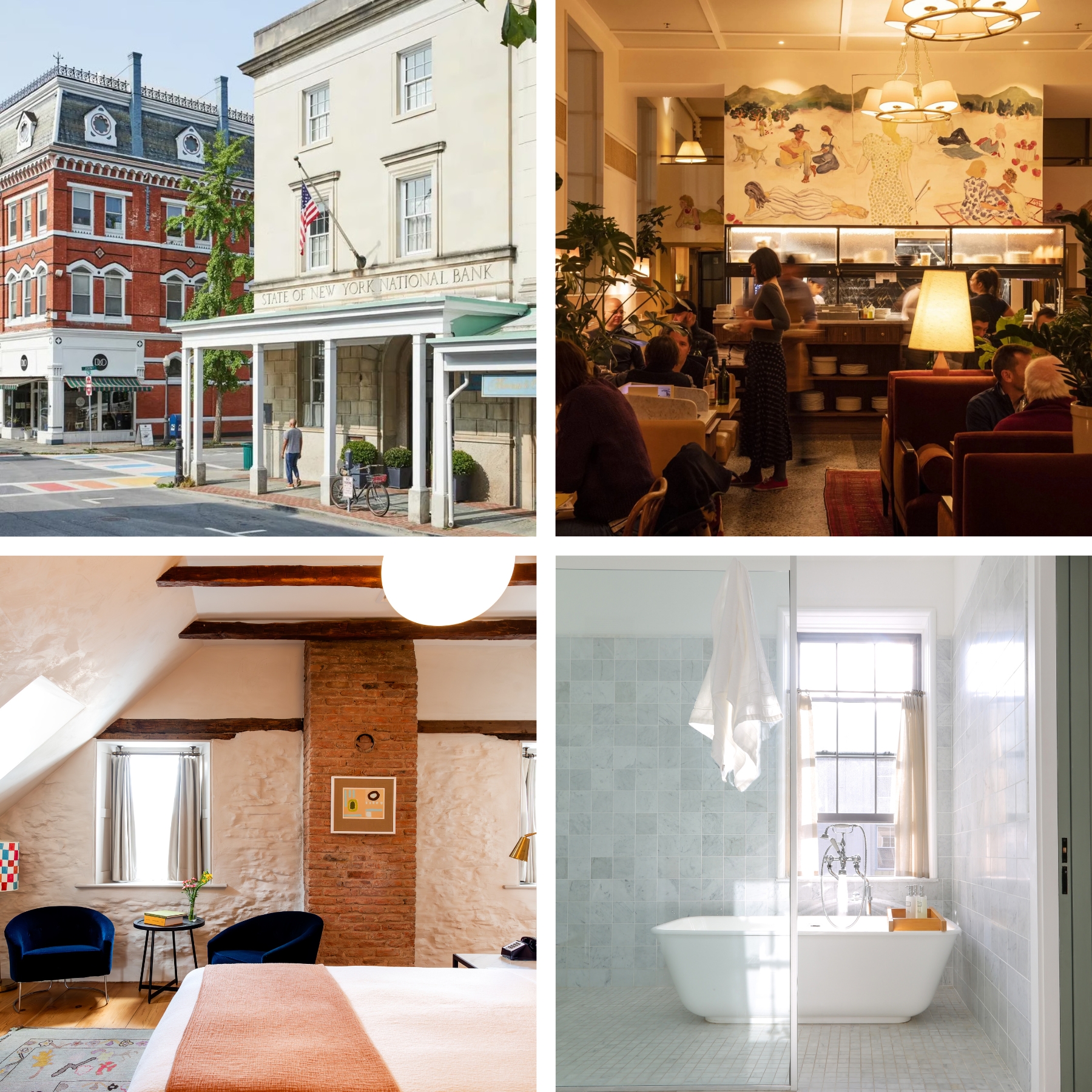 Hotel Kinsley’s on-site restaurant offers a central gathering space for retreats built around its walkable Kingston location. Photos: Harrison Lubin (above + 3) and c/o Hotel Kinsley (1, 2 + 4)